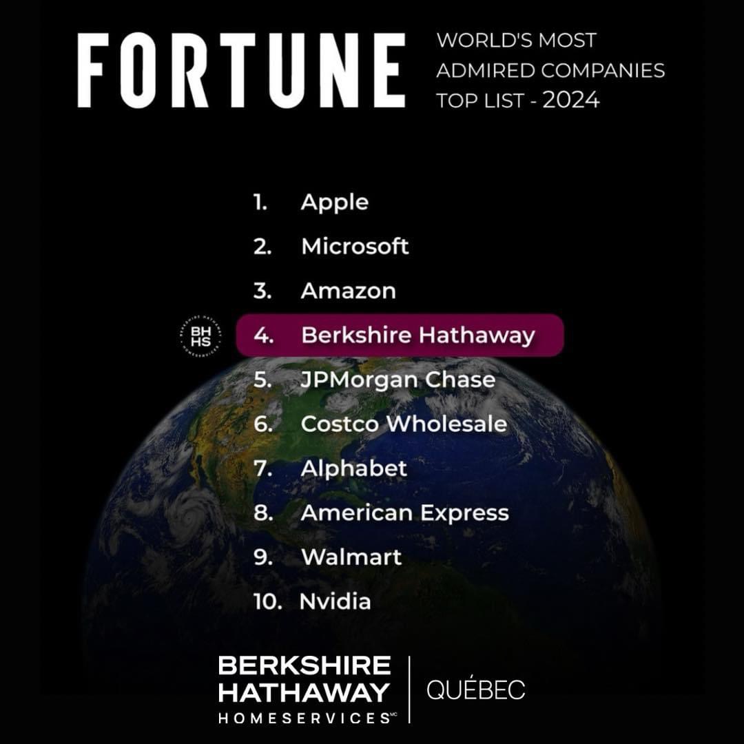 Berkshire Hathaway est reconnue comme l’une des entreprises les plus admirées pour 2024 dans le magazine Fortune (#4). Nous sommes une branche directe de cette organisation de renommée mondiale, et non une société affiliée ou opérant sous un accord de licence. Vous pouvez donc être assuré que chacun de nos courtiers est tenu aux mêmes normes élevées que celles de notre société mère envers ses investisseurs.